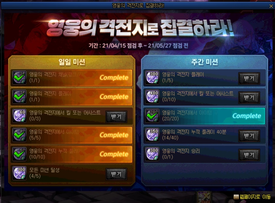 왼쪽 4개 미션이 완료됩니다