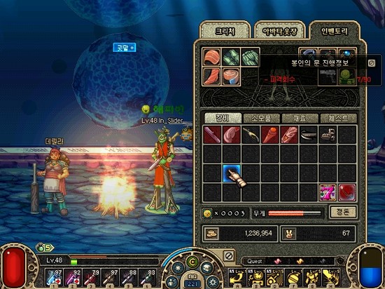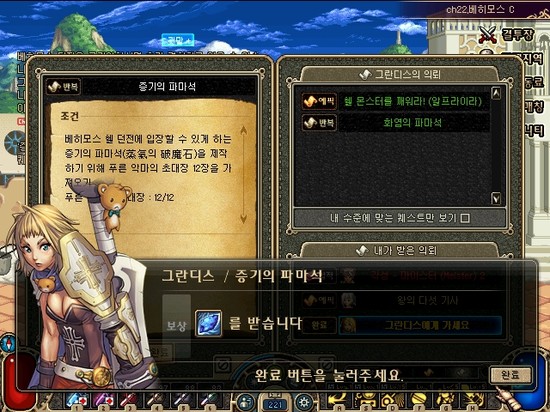 퀘스트창 인터페이스와 바람의돌 3개!!