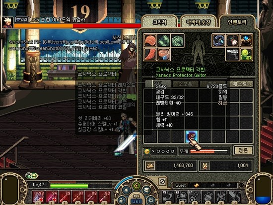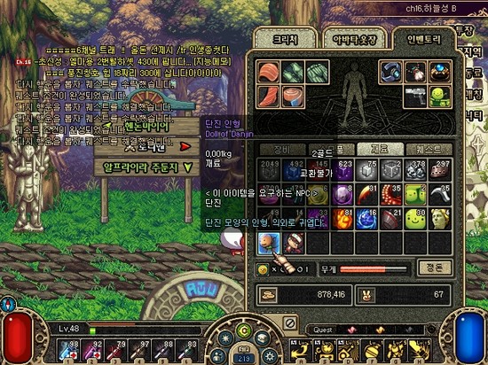 그 당시에는 강화하기 위해 제물용으로 +10이상 잡템들도 수십만골드의 가격이 있던시절이라 꽁돈 얻은 마음으로 올린 스샷입니다
