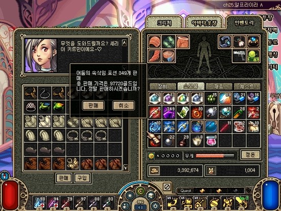 그 당시의 인벤토리 창과 소모품들 (feat. 코인갯수)