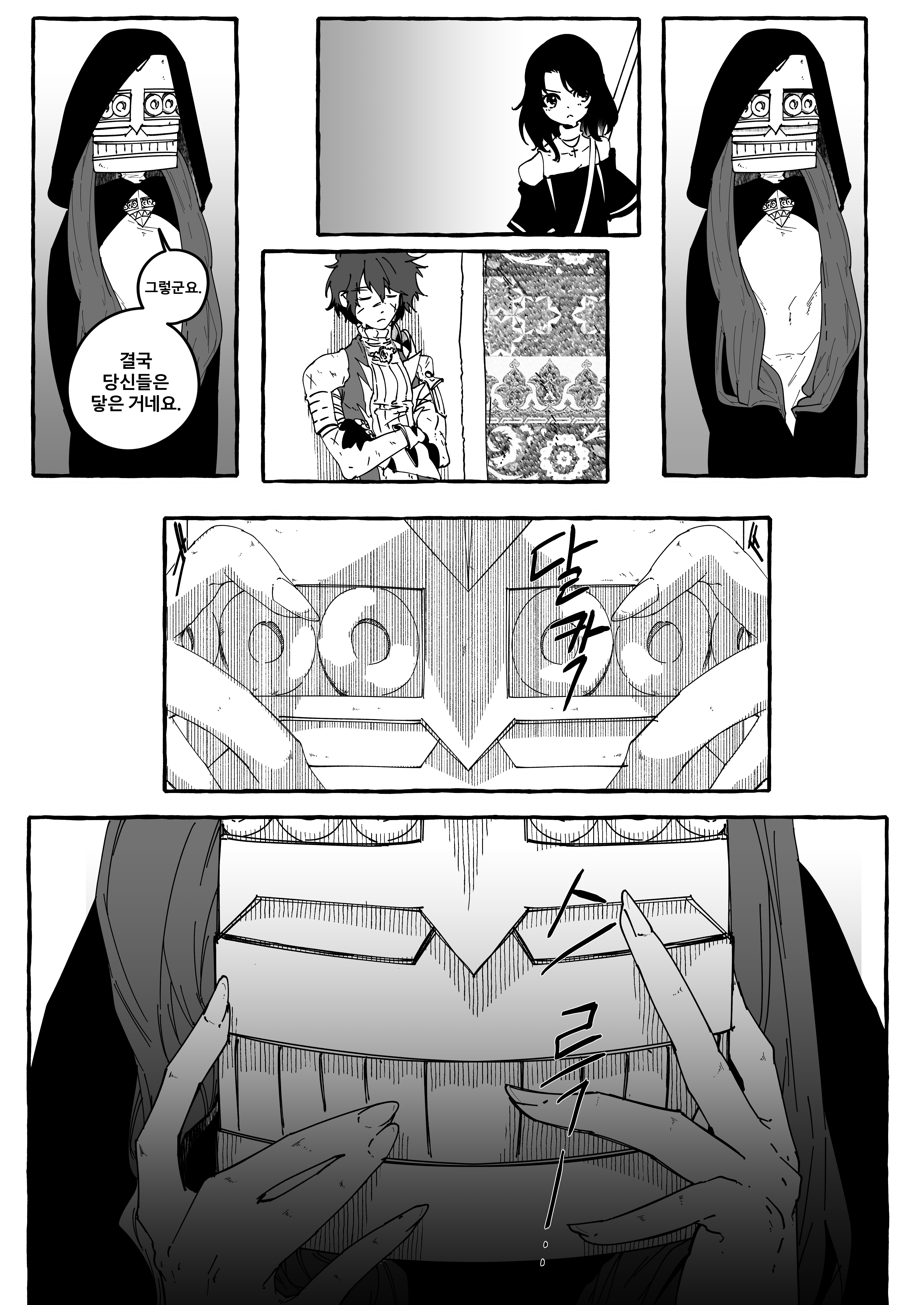 + 가면의 좋은 점. 표정 안 그려도 됨. 상자 속의 양 이라 편함.