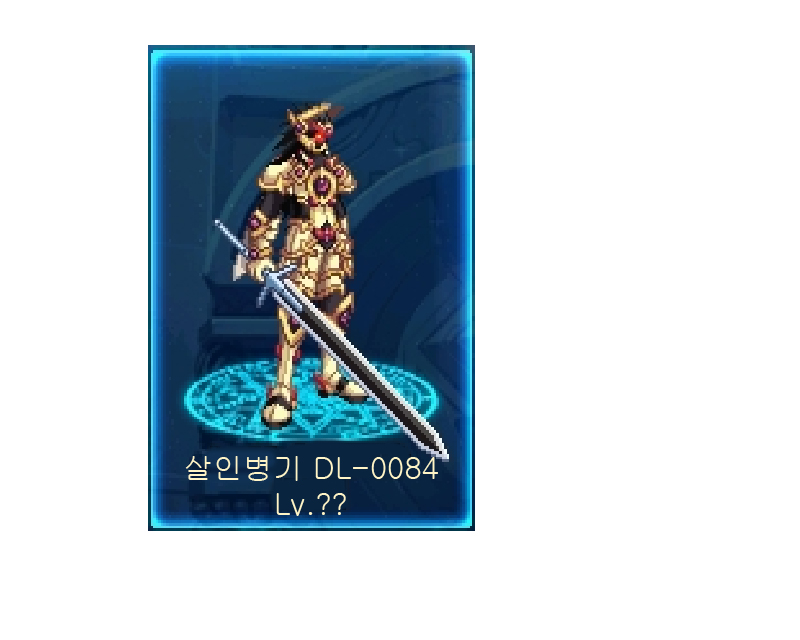 -데 로스 제국에서 극비리에 제작되고 있었던 병기 중 하나. 수 차례의 실패를 거듭하다 84번의 실험 끝에 만들어낸 인간과 기계를 복합시킨 제국의 병기이다. 본래 펠 로스 세력에 대항하기 위해 기나긴 실험과 고뇌 끝에 제작이 되어 펠 로스 세력과의 전쟁에 투입이 되었으나 번개를 맞아 제어 회로의 오작동이 일어나 데 로스 제국 병사들을 비롯해 황실 직속 연구진들을 무참히 살해하고 이리저리 떠돌며 무차별 살인을 저지르고 있다. 당시 모델명이 DL-0084였는데, 무차별적 살인을 저지르기에 '살인병기 DL-0084(줄여서 살인병기)' 라는 이름이 붙어버렸다. 지금도 어디선가 마물이든 사람이든 가차없이 베고 다닐 지도 모른다.