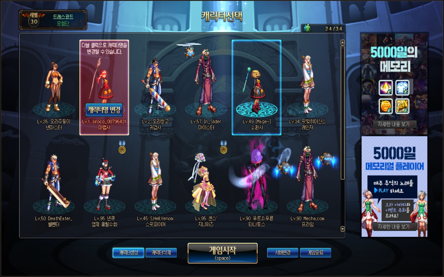 이걸로 만든 좋은 아이디의 캐릭이 특수문자 금지로 그 이후에 막혀서 캐릭터명 변경을 해야 했을때