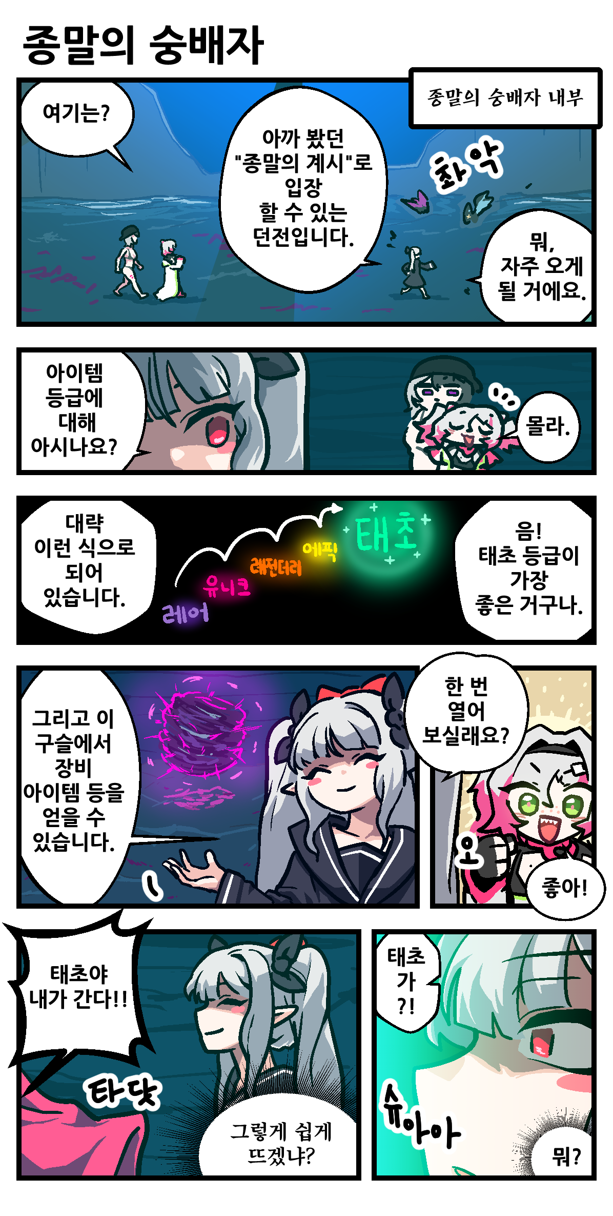 이번에 유입되어 플레이 하면서 있었던 일들과 느낀 점들을 기반으로 그렸습니다!