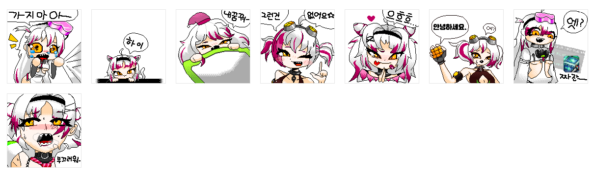러프 이미지가 깨져보이는 파일들이 있는데, 왜냐면 408x408 파일이 통채로 스티커 규격인줄 알고 한 서너개를 그렇게 했다가