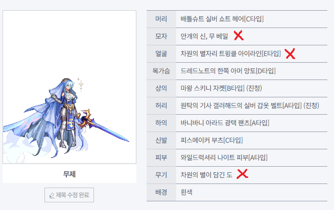 X표시한 부위는 현재 구할 수 없는 아바타입니다.