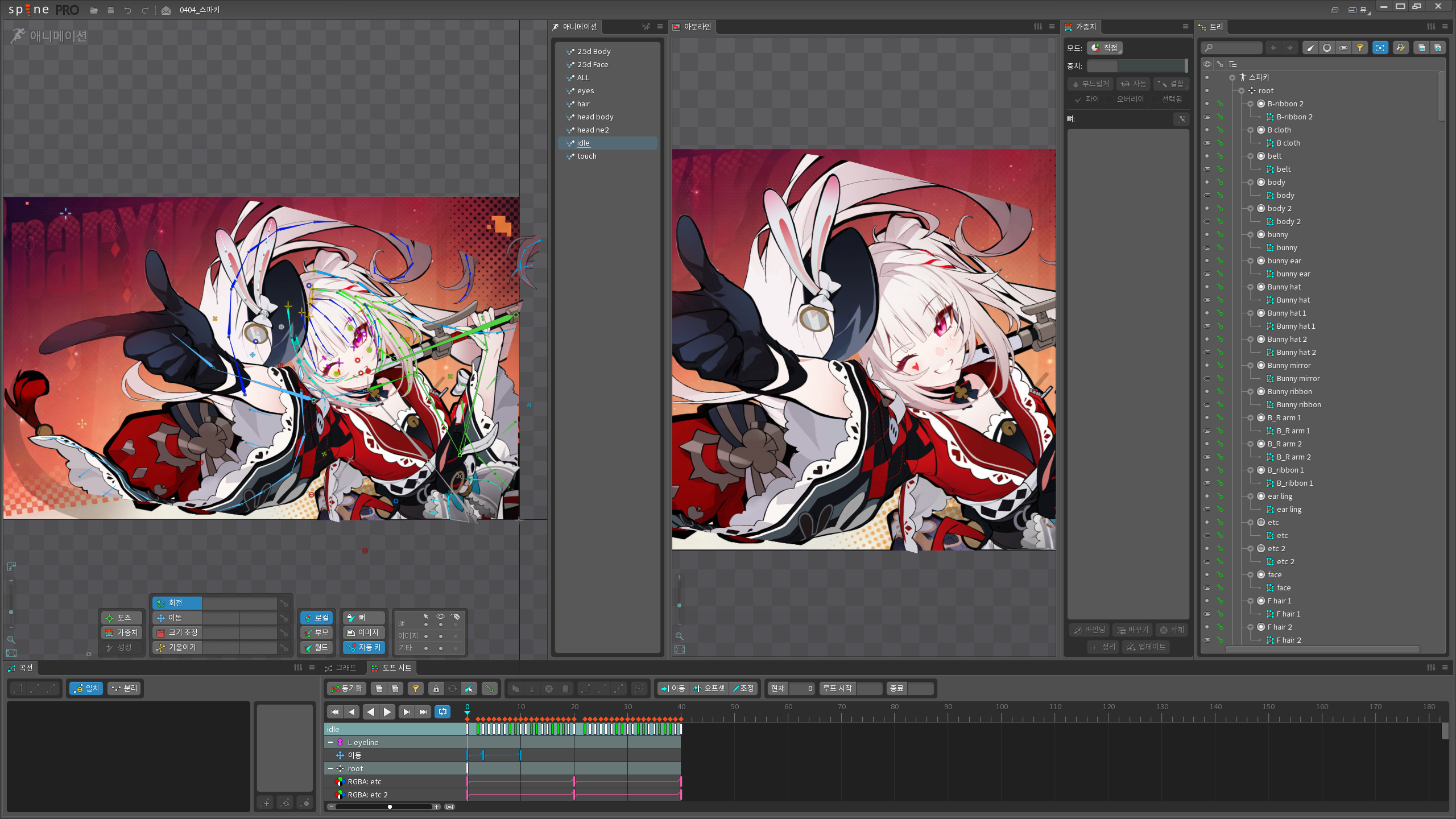 마지막 2각 컷씬은 스파인으로 직접 깎았습니다.