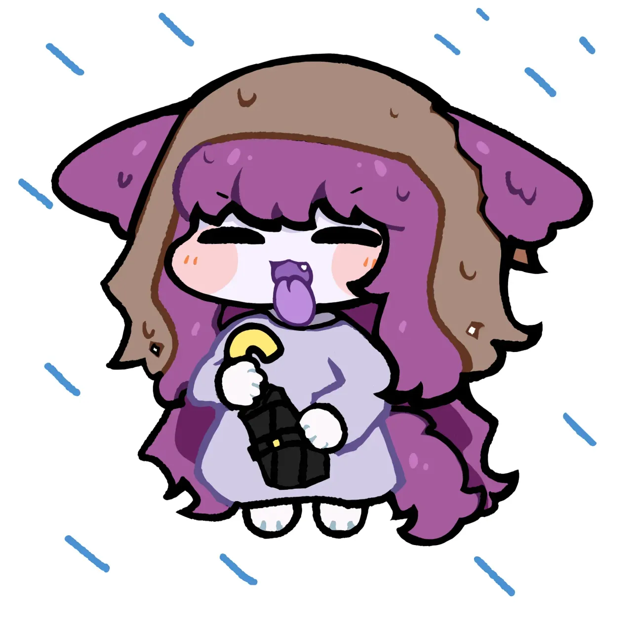 우비 대용으로 유리스 두건을 빌리고 비 맞는 모험가에게 여분의 작은 우산을 가지고 온 지에엥