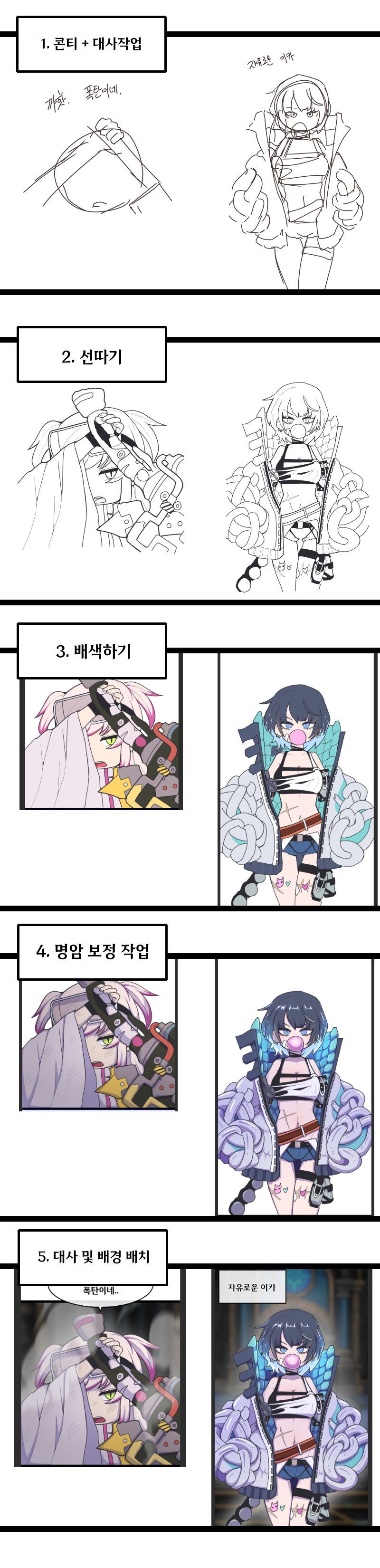 아처들은 많이 그려가지고 콘티가 훌훌 날리는데