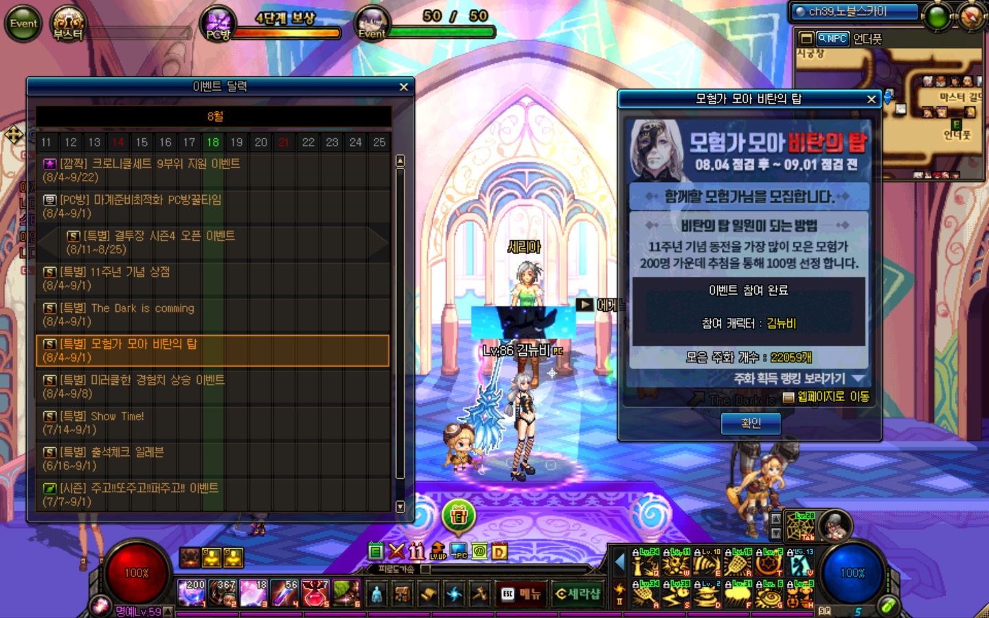 닉네임을 선점하게 되어서 룩만 맞춰놓고 놀던 녀석인데 이번 에게느 이벤트로 열심히 키워서 노가다 전선에 합류하였습니다