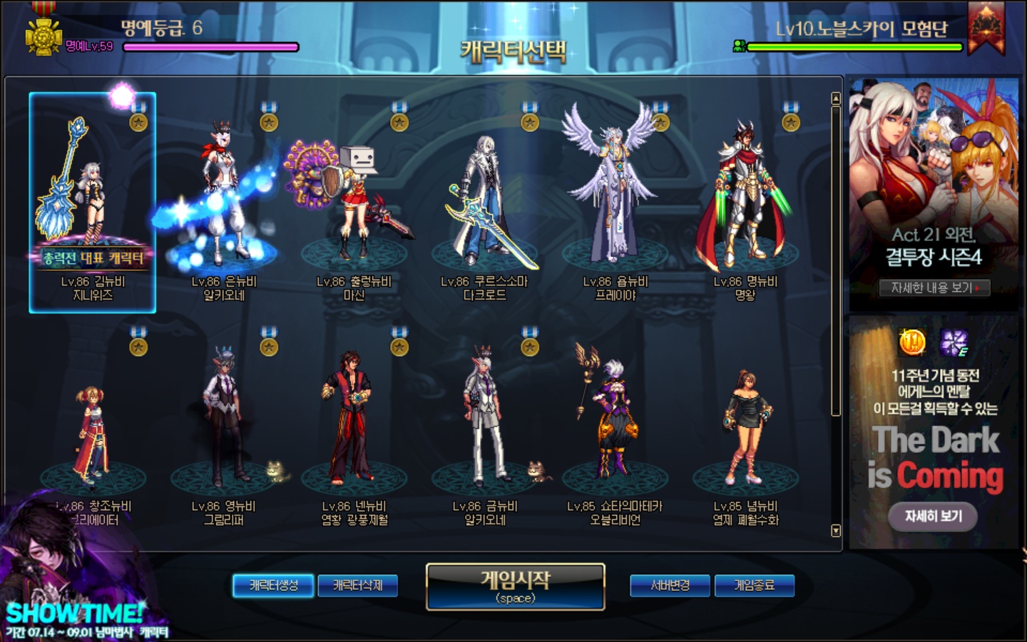 오늘 이벤트 마지막이라고 한캐릭씩 돌면서 동영상을 찍고 이 캐릭터 선택창 스크린샷을 찍는데 가슴이 뭉클해지더라고요