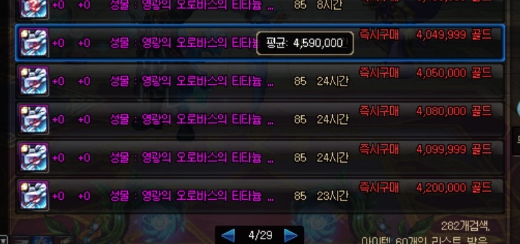 그런데 현재 경매장 시세가 400만골드 대의 가격대를 형성하고 있다. 부담된다면 부담될만한 가격대이다.