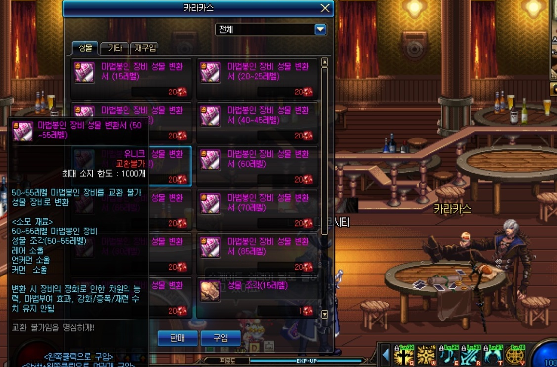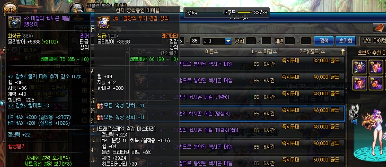 재료로 쓸 85제 마봉 판금상의를 사자. 이때 강화수치는 유지되지 않지만 아이템의 등급(최상급 등)은 유지되므로