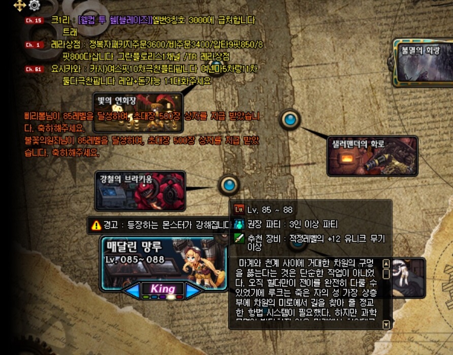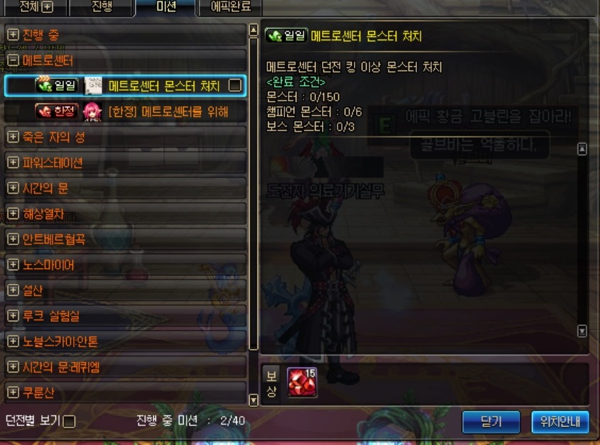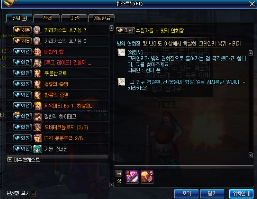 우리가 수행중인 매달린 망루 퀘스트는 맵을 15개 클리어해야하기 때문에, 모험가를 다 찾더라도