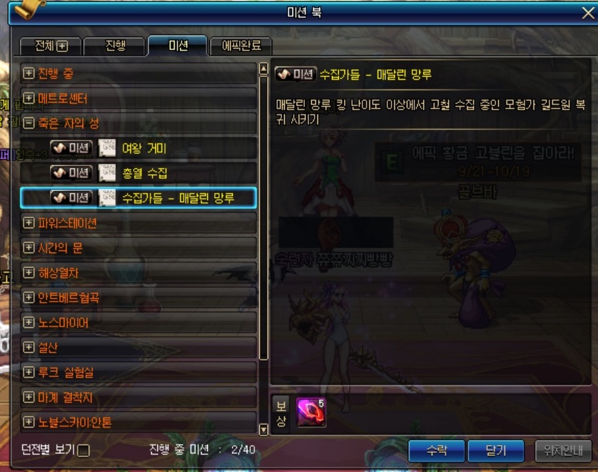 위 퀘스트와 마찬가지로 클리어조건이 클리어한 맵수이므로 모험가 두명을 찾았더라도