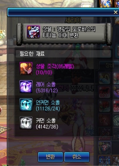 이외 필요한 재료는 레어소울 12, 언커먼소울 24, 커먼소울 36개인데 이것은 구하기 어렵지 않을 것이다.