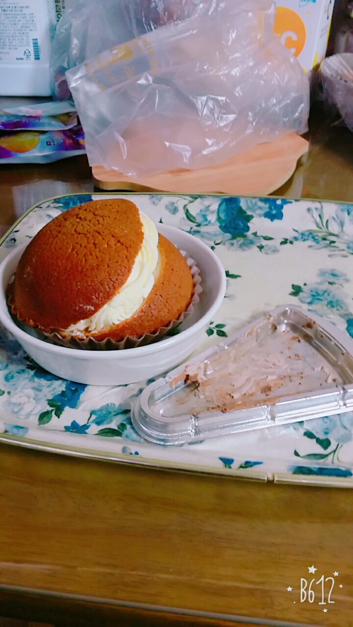 파리바게트에서 케잌조각이랑 빵을사쑴