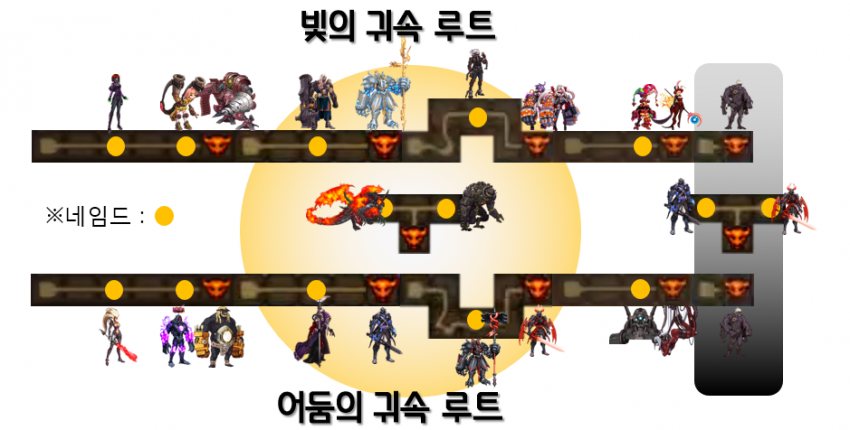 물리데미지쪽인 얼디는 거의 빛의 귀속 루트 (루멘루트)로 가니 빛의 귀속 위주로 외워주세요.