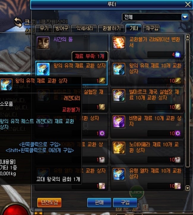 던전에 들어간 스펙이며 1판에 나오는 차조와 새로나온 고대던전 조각수입니다.