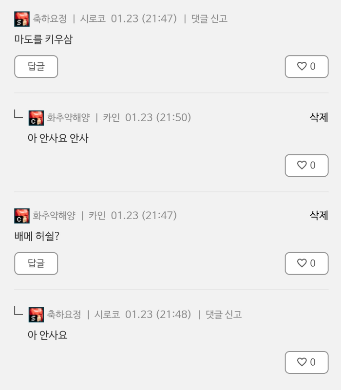 공지 [상시이벤트] 12월 묻고답하기 이벤트 안내 (11월 답변왕 발표) (10) 던전앤파이터 2025.12.11 1,573 0 공지 [수상자 발표] [월드보스] 정보/공략 작성 이벤트 수상자 안내 던전앤파이터 2025.12.04 2,679 0 공지 [이벤트] [디레지에] 레이드 정보/공략 작성 이벤트 던전앤파이터 2025.11.26 6,804 0 공지 2025 던파페스티벌 20th Anniversary 발표 요약 던전앤파이터 2025.11.22 81,992 22 공지 장비 / 플레이 / 뉴비 정보 모음 (218) 던전앤파이터 2025.04.24 999,999+ 115 공지 던전 공략 모음 (디레지에 레이드) (176) 던전앤파이터 2025.11.26 999,999+ 138 공지 전직 별 가이드 모음 (25/11/24 갱신) (744) 던전앤파이터 2025.11.24 999,999+ 389 토론 [남스트라이커] 후 던파 운영자 뭐하냐 진짜 역겹네;; Strⅰker 2018.01.25 1,055 0 수다 [공통] 븝딱은 사회의 악입니다 (1) 샤넬의키스♥ 2018.01.25 2,071 0 수다 [공통] 으엨 슈밬 물리치료사 합격해서 그런가 잠이 안옴 (14) 최강딜러곽씨 2018.01.25 1,959 0 수다 [공통] 전버협 인구 너무 적음 (7) Gravitation 2018.01.25 2,342 0 수다 [공통] 근데 피븝딱추천해주신분들 (4) 배틀메이지A 2018.01.25 2,145 0 토론 [다크템플러] 암제 1각버그 (1) SolaBimS 2018.01.25 1,477 0 수다 [공통] 난 피븝딱이 싫어 (7) Gravitation 2018.01.25 2,401 0 수다 [공통] 븝딱A 계약을 이행하세요 (5) Gravitation 2018.01.25 2,004 0 수다 [공통] 현재 생각중인 새친구목록 (19) 배틀메이지A 2018.01.25 2,406 0 수다 [공통] 진짜 던파 븝딱충 들 보몃 (8) 샤넬의키스♥ 2018.01.25 3,147 1 수다 [공통] 오 시간 힐끗봤는데 333임! (3) 배틀메이지A 2018.01.25 2,380 0 수다 [공통] 하늘은 까야 제맛 (7) Gravitation 2018.01.25 2,258 0 수다 [공통] 점검 전 마지막 글은 누가 될까?(내용x) Mechanic-! 2018.01.25 1,335 0 수다 [공통] 와.. 아침이다~ (2) 샤넬의키스♥ 2018.01.25 2,011 0 수다 [공통] 아...안사요 안사 (5) 화추약해양 2018.01.25 2,684 0 수다 [공통] 아아 빨리남캐를키워야겟엉 (3) 배틀메이지A 2018.01.25 2,048 0 수다 [공통] 2요도 무엇. 술따오 2018.01.25 1,681 0 수다 [공통] 여메카 넘나 좋음! 샤넬의키스♥ 2018.01.25 2,663 0 수다 [공통] 테미 호감도 가즈아ㅏㅏㅏㅏㅏㅏㅏㅏㅏ!! (2) 배틀메이지A 2018.01.25 1,938 0 토론 [공통] 50렙에 제때 퀘클하고 각성하라 (그리고 개발진도 각성해라..) (2) 아수롸발발톼 2018.01.25 4,664 0