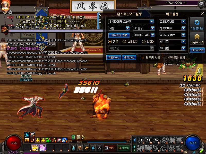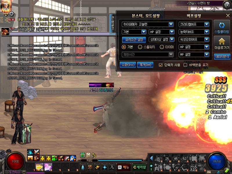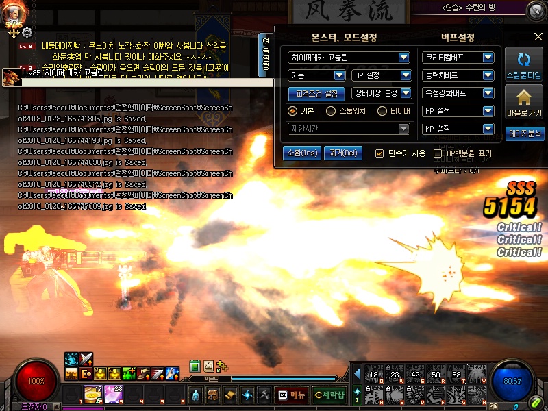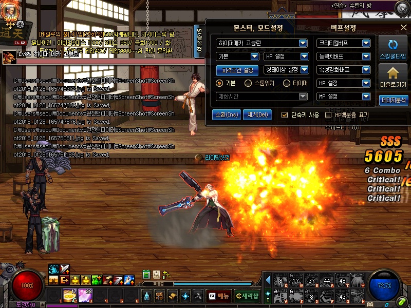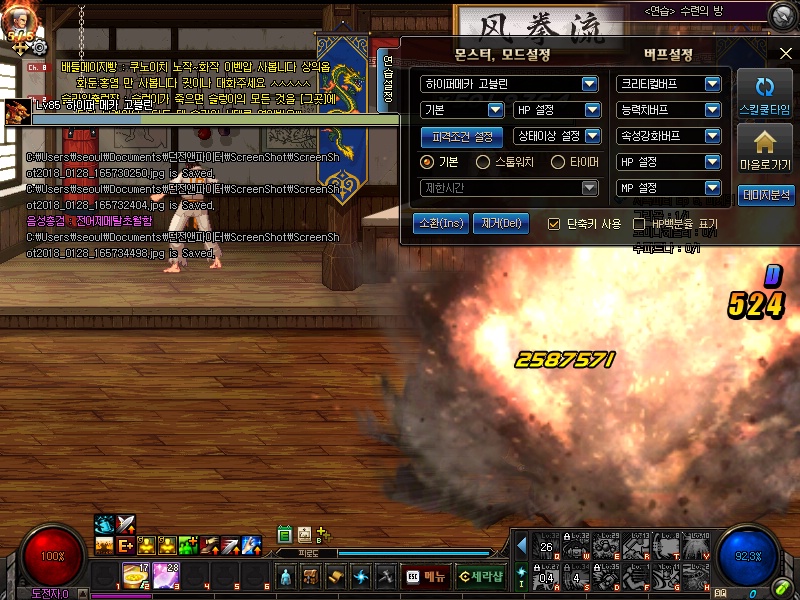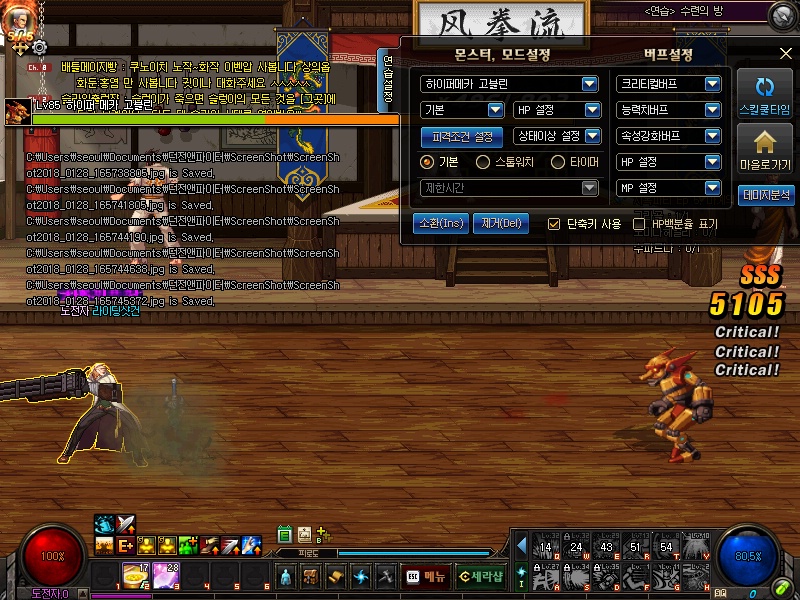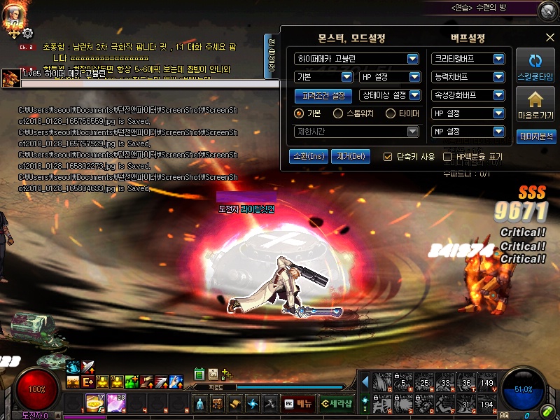 스샷을 통해서 어떤스킬을 주로 사용하는지 알아봅시다.