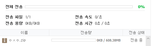 rar이 지원 안된다고해서 우회작업을 거쳐서 전송하려는데 저대로 멈춰있네.