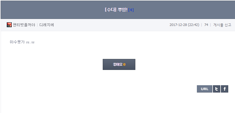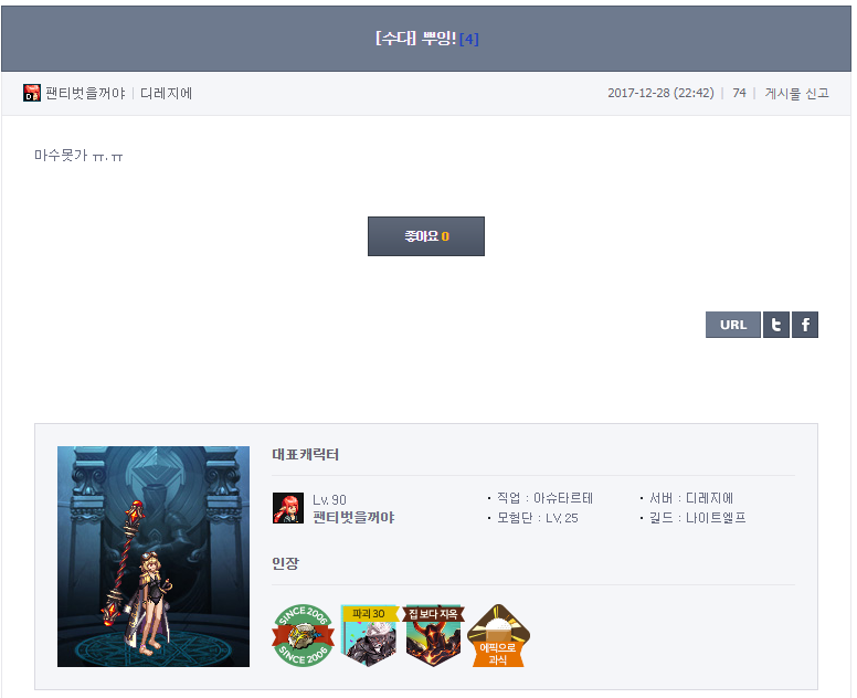 공지 [이벤트] 천해천 공략 이벤트 기간 연장 안내 던전앤파이터 2026.03.26 6,450 4 공지 던파로ON : 천해천 발표 요약 던전앤파이터 2026.03.07 22,237 15 공지 [상시이벤트] 3월 묻고답하기 이벤트 안내 (2월 답변왕 발표) 던전앤파이터 2026.03.12 6,403 0 공지 장비 / 플레이 / 뉴비 정보 모음 (224) 던전앤파이터 2025.04.24 999,999+ 121 공지 던전 공략 모음 (천해천 상급 던전) (188) 던전앤파이터 2025.11.26 999,999+ 145 공지 전직 별 가이드 모음 (26/03/03 갱신) (769) 던전앤파이터 2026.02.27 999,999+ 402 질문 [공통] 형들 요원 이거 레이드공팟갈수잇음? (5) 불공명 2018.02.09 1,280 0 팁 [여런처] 스톰트루퍼(여런처) 수치로 알아보는 업글픽 part.1 (1) 여성의진매력 2018.02.09 12,115 3 수다 [공통] 어휴 븝딱들 (5) 멍멍법사 2018.02.09 1,265 0 수다 [공통] 아 찍는거 타이밍 늦었다 ㅇㄴ; 팬티벗을꺼야 2018.02.09 911 0 수다 [공통] 설거지 할때 가장 괴로운건 (3) 노-퓨쳐 2018.02.09 946 0 수다 [공통] 와우 에컨을 퍼주네 (2) Gravitation 2018.02.09 1,277 0 수다 [공통] 사실 요리 만드는건 별로 안힘듬 (8) 도소망 2018.02.09 887 0 수다 [공통] 던파 꽤 자주하는 초보 감상. (8) 악싸울아비 2018.02.09 1,429 0 수다 [공통] 오랜만에 민속놀이나 해야지 Kiryu* 2018.02.09 798 0 수다 [공통] 어예 일본간다 (5) Gravitation 2018.02.09 840 0 수다 [공통] 고양이한테 또맞음 ㅠㅠ (3) 노-퓨쳐 2018.02.09 1,051 0 수다 [공통] 피로도 얼마나 쓸데가없었으면 (1) Kiryu* 2018.02.09 1,062 0 수다 [공통] 오옹 버서커1위 올배미 2018.02.09 1,232 0 수다 [공통] 아아아앍 (7) 노-퓨쳐 2018.02.09 1,018 0 수다 [공통] 으으 남이 차려준 밥 먹고싶다 (17) 도소망 2018.02.09 1,006 0 수다 [공통] 나만큼 클린한 던린이는 없을거야 언제나우린☆ 2018.02.09 1,199 0 수다 [공통] 영전뚤린길드찾음 BlueSapphire 2018.02.09 897 0 수다 [공통] 지켜보고 있다 (6) 고라임즈™ 2018.02.09 1,181 0 수다 [공통] 님들 던파 접속 원활하게 잘됨?? (1) 종이호랑이 2018.02.09 1,042 0 수다 [공통] 사행성공지 비유하면 그거아닌가 (3) Kiryu* 2018.02.09 1,095 0