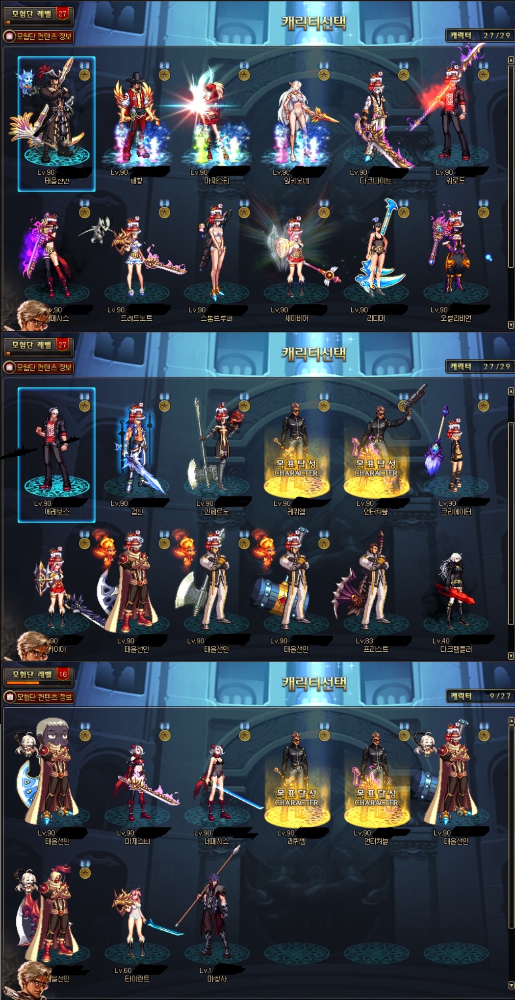 딱히 캐릭 많이 키웠다고 뭐 좋은것도 없고(이번에 모험단 개편되면 어떨지 모르지만), 딱히 감동 받을만큼 센 캐릭도 없어서 그냥저냥 좀 따분해서 소감문 한번 써봤습니다.