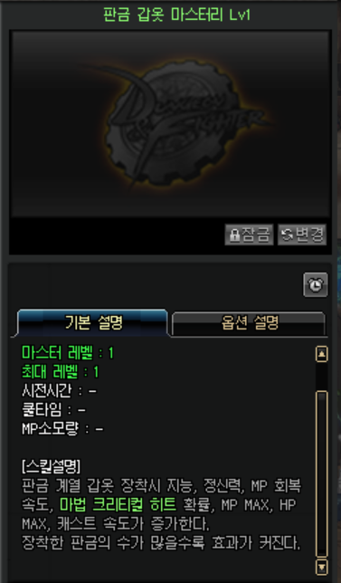 옵션은 '잠재 능력'의 상위 호환이지만, 대신 전직패시브나 직업 패시브가 없습니다.