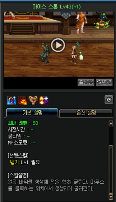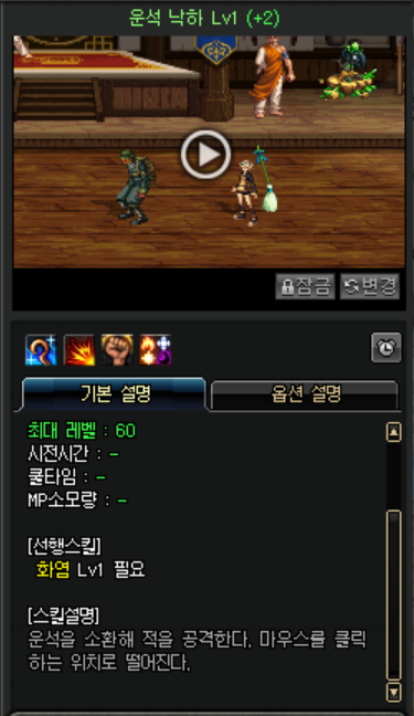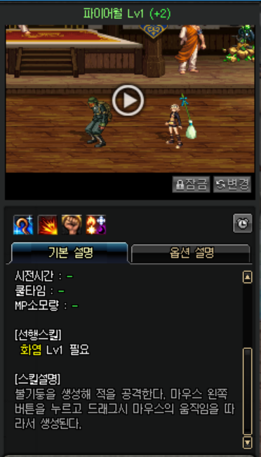 곧 설명 드릴 '파이어월'과 '운석 낙하'는 화염 계열의 스킬로 파이어월을 사용해 게이지를 바닥냈으면 운석 낙하 역시 사용하지 못합니다.