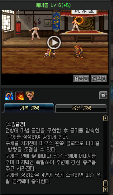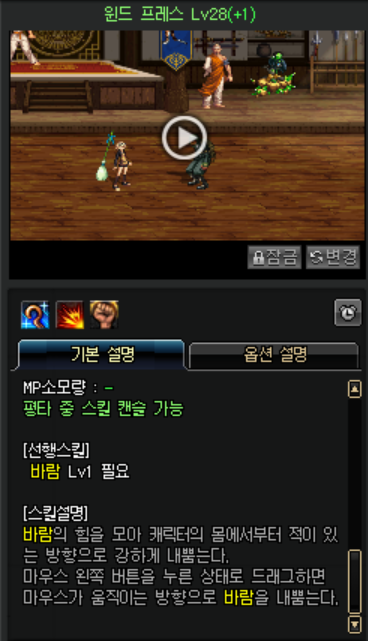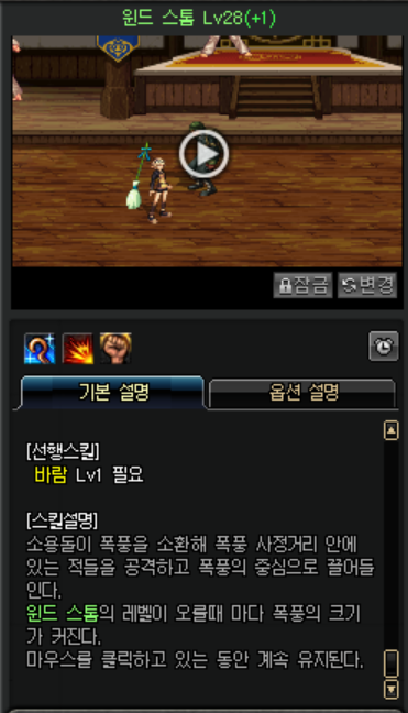 윈드 프레스보단 약하지만 본체가 움직일 수 있고, 꾹 누르고 있으면 몹몰이도 되는 완소 스킬입니다.