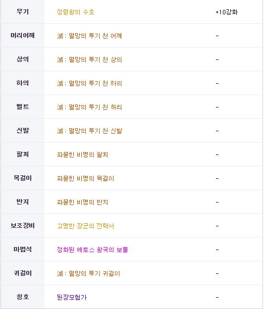 보기 전직 1차 각성 2차 각성 전체 전직 전체 전직 귀검사(남) 웨펀마스터 소울브링어 버서커 아수라 검귀 귀검사(여) 소드마스터 다크템플러 데몬슬레이어 베가본드 블레이드 격투가(남) 남넨마스터 남스트라이커 남스트리트파이터 남그래플러 격투가(여) 여넨마스터 여스트라이커 여스트리트파이터 여그래플러 거너(남) 남레인저 남런처 남메카닉 남스핏파이어 어썰트 거너(여) 여레인저 여런처 여메카닉 여스핏파이어 패러메딕 마법사(남) 엘레멘탈 바머 빙결사 블러드 메이지 스위프트 마스터 디멘션워커 마법사(여) 엘레멘탈 마스터 소환사 배틀메이지 마도학자 인챈트리스 프리스트(남) 남크루세이더 인파이터 퇴마사 어벤저 프리스트(여) 여크루세이더 이단심판관 무녀 미스트리스 도적 로그 사령술사 쿠노이치 섀도우댄서 나이트 엘븐나이트 카오스 팔라딘 드래곤나이트 마창사 뱅가드 듀얼리스트 드래고니안 랜서 다크 랜서 총검사 히트맨 요원 트러블 슈터 스페셜리스트 아처 뮤즈 트래블러 헌터 비질란테 키메라 다크나이트 다크나이트 크리에이터 크리에이터 공통 공통