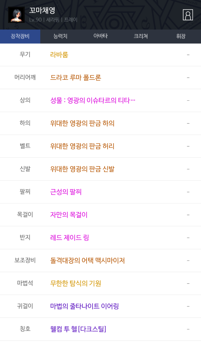 무기 1 보장2 서녘2 상의1 압타1 하부브사면 딱이긴한데 너무 비싼데..