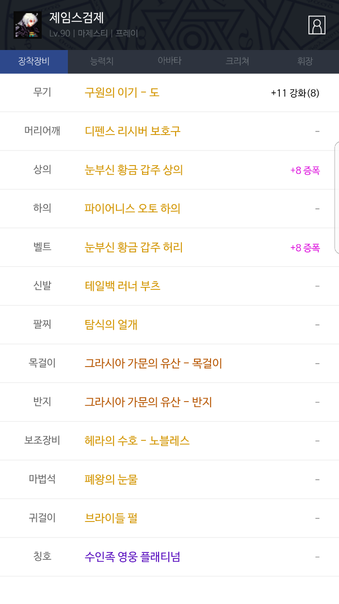 보기 전직 1차 각성 2차 각성 전체 전직 전체 전직 귀검사(남) 웨펀마스터 소울브링어 버서커 아수라 검귀 귀검사(여) 소드마스터 다크템플러 데몬슬레이어 베가본드 블레이드 격투가(남) 남넨마스터 남스트라이커 남스트리트파이터 남그래플러 격투가(여) 여넨마스터 여스트라이커 여스트리트파이터 여그래플러 거너(남) 남레인저 남런처 남메카닉 남스핏파이어 어썰트 거너(여) 여레인저 여런처 여메카닉 여스핏파이어 패러메딕 마법사(남) 엘레멘탈 바머 빙결사 블러드 메이지 스위프트 마스터 디멘션워커 마법사(여) 엘레멘탈 마스터 소환사 배틀메이지 마도학자 인챈트리스 프리스트(남) 남크루세이더 인파이터 퇴마사 어벤저 프리스트(여) 여크루세이더 이단심판관 무녀 미스트리스 도적 로그 사령술사 쿠노이치 섀도우댄서 나이트 엘븐나이트 카오스 팔라딘 드래곤나이트 마창사 뱅가드 듀얼리스트 드래고니안 랜서 다크 랜서 총검사 히트맨 요원 트러블 슈터 스페셜리스트 아처 뮤즈 트래블러 헌터 비질란테 키메라 다크나이트 다크나이트 크리에이터 크리에이터 공통 공통