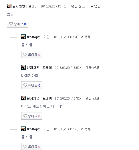 댓글 다 삭제하고 혼자 왜이래라고 작성한 정공
