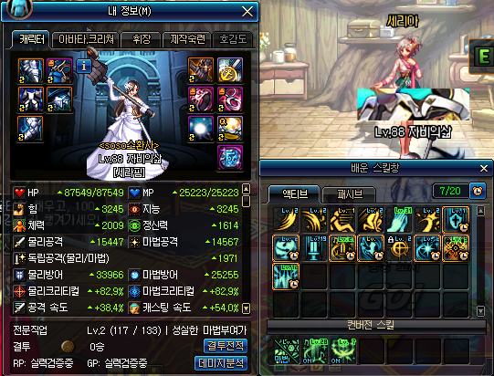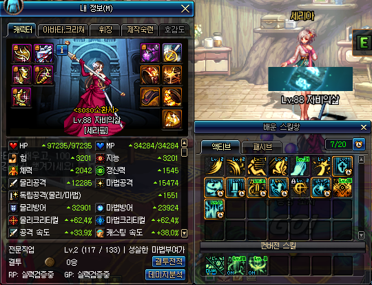 # 제 육성 캐릭은 아직88랩인 상황이라 크오빅 랩이 1이 낮습니다. 만약 90이 된다면 귀걸이 포함 약 3300/19/17의 그냥 노말한 세라핌이 될 것 같군요.