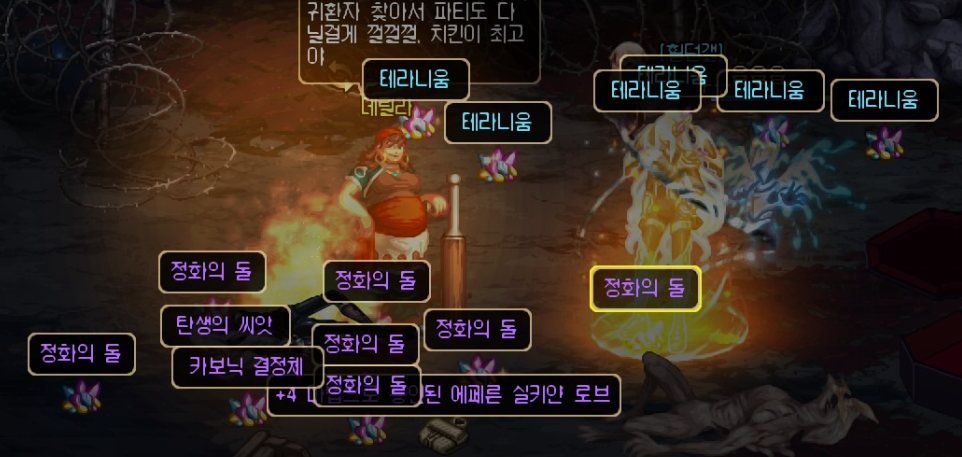던전을 돌다보면 보스방에서 아이템이 너무 많이 나와서 그거 하루 종일 먹어야 하는 경우가 있어요!