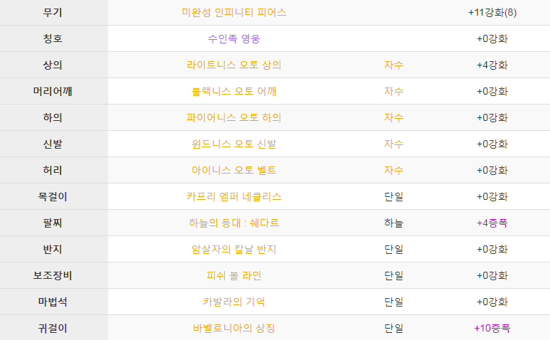 2. 자수가 아직 현역이라길래 끼고있긴한데 천년 3(상,하,벨)/ 투기 4(법석,팔찌,보장,신발)(셋옵 : 13추,물독8퍼)/ 어깨 폴드런 이렇게 끼는게 인식이 더 좋을까요?(딜은 자수가 좀 더 나와요)