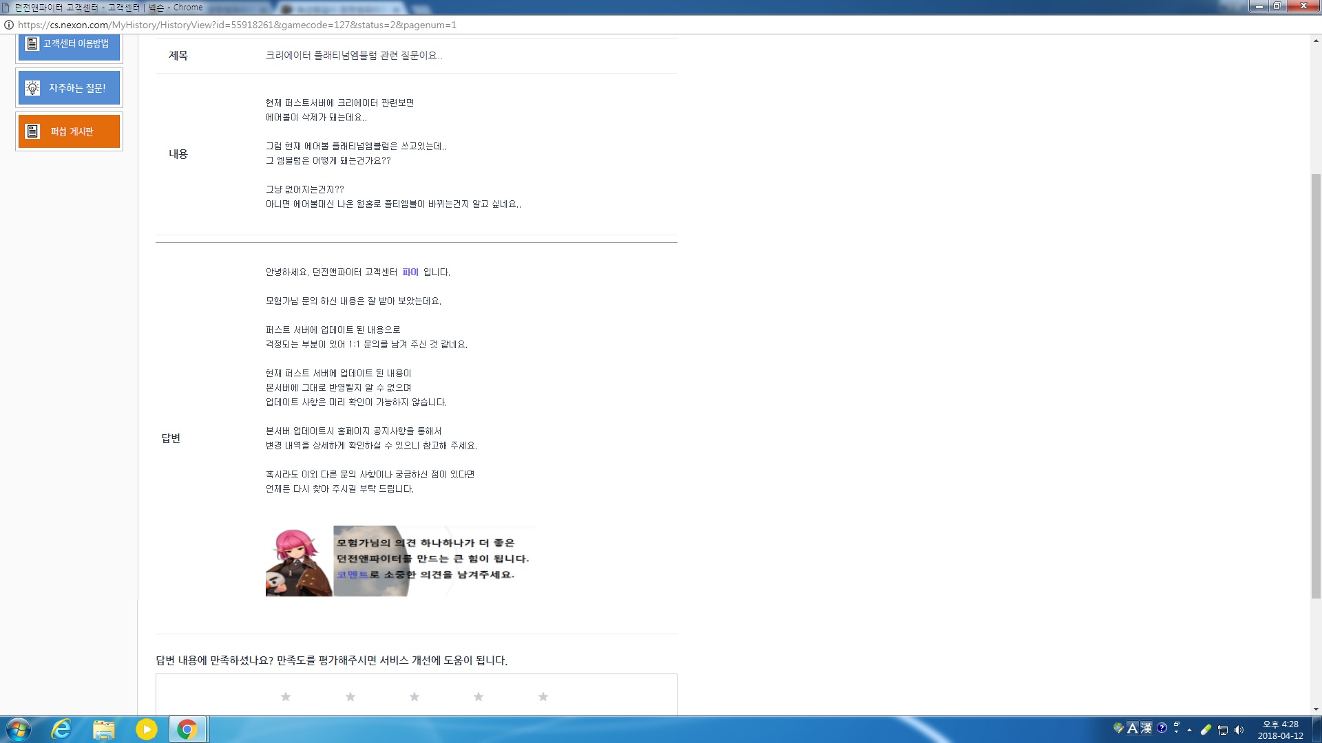 왜 제일 정확해야할 공홈1:1문의가 이런 매크로식 답변만 주는건지..