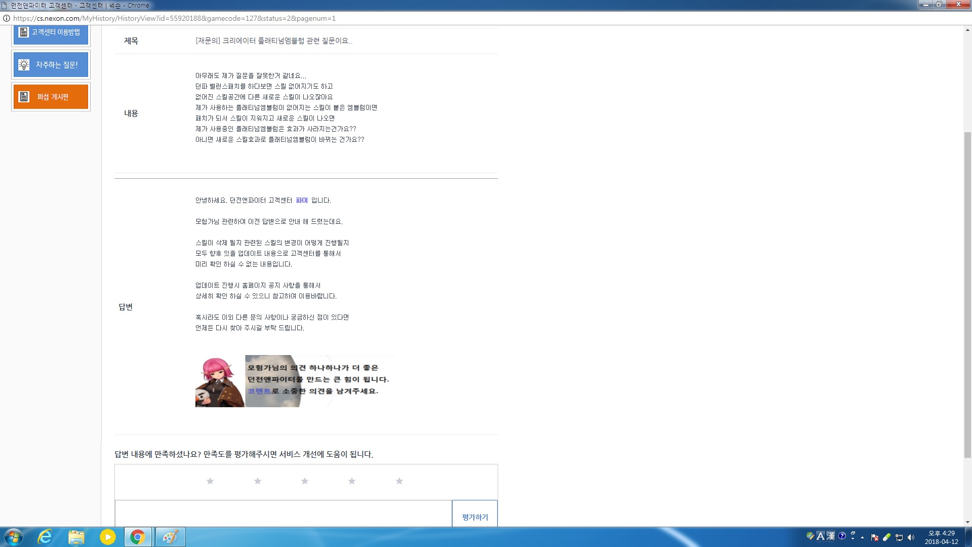 제가 이번 밸런스패치로 궁금한게 생겨서 이런 질문글을 1:1문의로 해봤습니다.