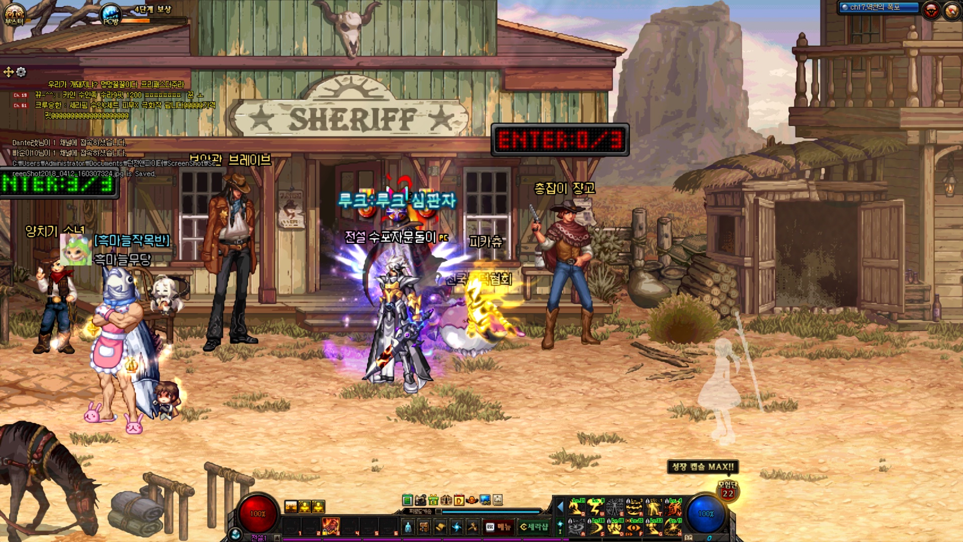 그런데 접속하자마자 4단계 상태로 있었습니다. (신룡소환 캐릭터는 제 계정 캐릭터입니다)