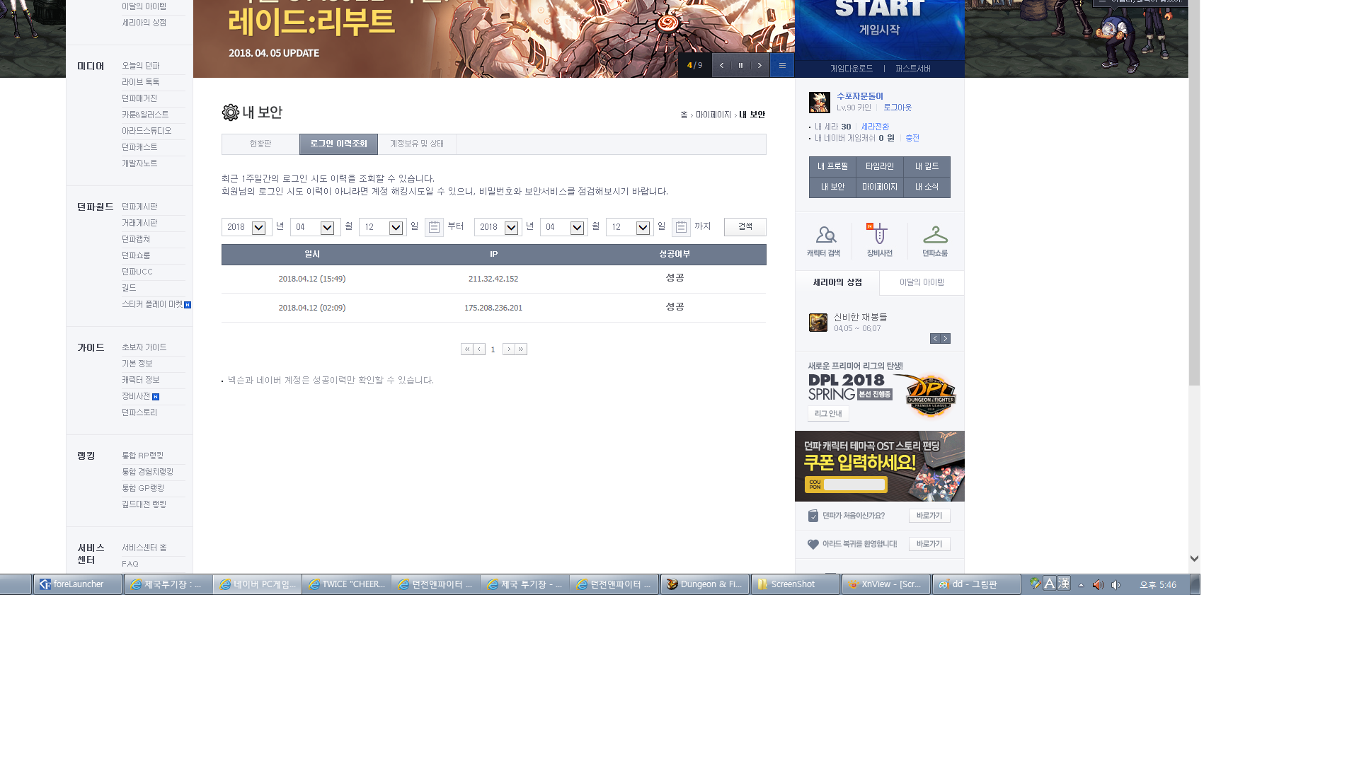 먼저 저는 네이버 던파 채널에서 던파를 하고 대부분 pc방에서 플레이하는 유저입니다.
