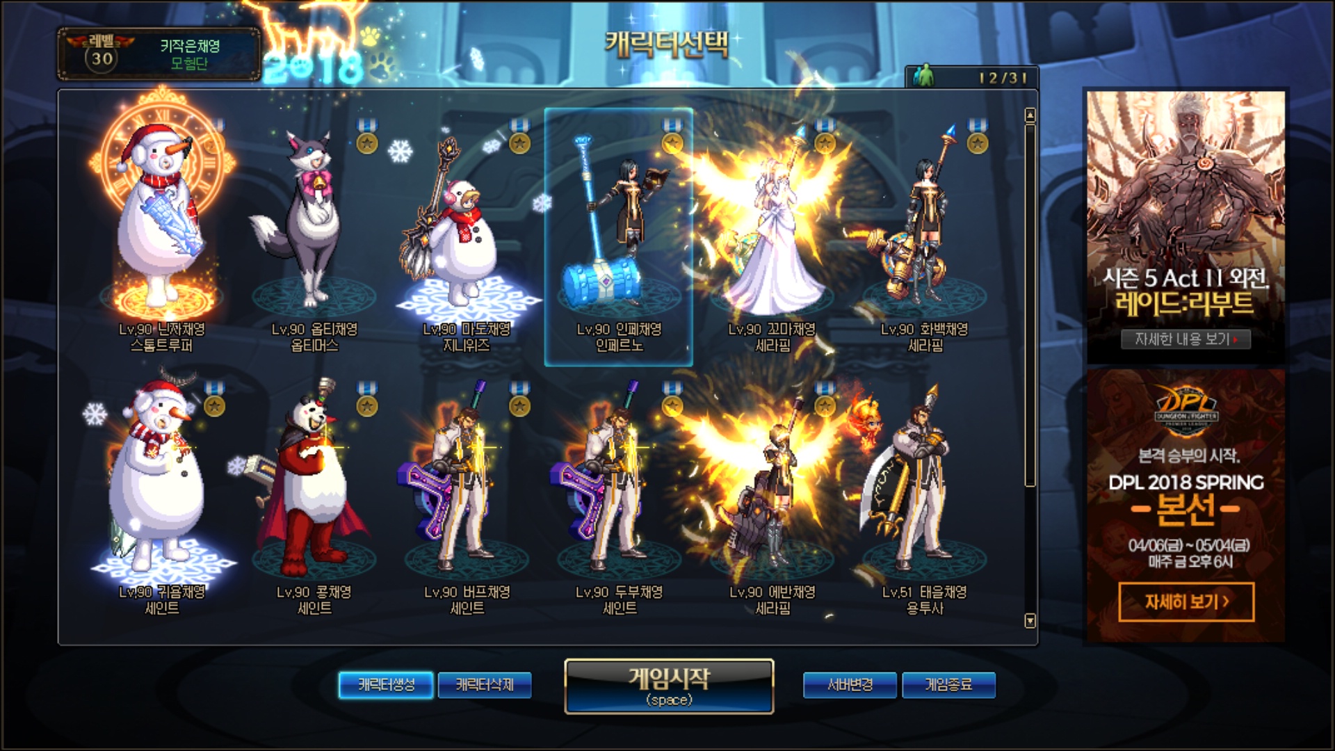 공지 [상시이벤트] 4월 묻고답하기 이벤트 안내 (3월 답변왕 발표) 던전앤파이터 2026.04.09 1,264 2 공지 [이벤트] 천해천 공략 이벤트 기간 연장 안내 던전앤파이터 2026.03.26 8,084 4 공지 던파로ON : 천해천 발표 요약 던전앤파이터 2026.03.07 23,589 15 공지 장비 / 플레이 / 뉴비 정보 모음 (224) 던전앤파이터 2025.04.24 999,999+ 122 공지 던전 공략 모음 (천해천 상급 던전) (190) 던전앤파이터 2025.11.26 999,999+ 145 공지 전직 별 가이드 모음 (26/03/03 갱신) (769) 던전앤파이터 2026.02.27 999,999+ 402 수다 [공통] 고칠거면 빨리 고쳐줘라.. (2) 적월호야 2018.04.12 1,002 0 수다 [엘레멘탈 바머] 던파 접속 강고담ㅣ 2018.04.12 1,004 0 수다 [공통] 진짜 접속안되네 대다나다 (1) 반신반인 2018.04.12 915 0 팁 [공통] 팅기는 캐릭 데리고 제국투기장을 가면? 모지스 2018.04.12 3,518 1 수다 [공통] 확률형 접속 (1) 병걸린그분 2018.04.12 1,149 0 수다 [공통] 금일 사태에 대한 띵욱이의 사과영상 기원 (1) 남자루루 2018.04.12 1,124 1 수다 [공통] 어인모자있는캐릭은 접속안됨? (3) 템펫 2018.04.12 1,033 0 수다 [공통] 90 렙 짜리는 다 튕기네? (2) 용의무성 2018.04.12 1,002 1 수다 [공통] 그냥 서버를 내리고 임시점검을 때리지 (3) 이름없는장미 2018.04.12 957 0 수다 [남스핏파이어] 뭘 했길래 들어가면 팅기냐 네오플 (2) |L.S.닐스| 2018.04.12 1,409 1 토론 [공통] 이거하나만 미분해주심 안될까요 (16) 구미호아리♡ 2018.04.12 1,080 0 수다 [공통] 성욱아.... 심심한공대장 2018.04.12 681 0 수다 [공통] 근래 수게 유입 오늘같은 날은 없었다 (2) 고라임즈™ 2018.04.12 1,069 0 수다 [공통] 대력 한시간 이상 헬게이트인데 뭐하닝? 엘레노얼 2018.04.12 783 0 수다 [공통] 공지로 해주지 (4) 아이엘리시아 2018.04.12 1,049 0 수다 [공통] 현재까지도 아무런 공지도 없네 (2) 적월호야 2018.04.12 802 0 수다 [공통] 분명 정기점검인데 왜 점검보다 오류가 더 큰거지? (1) Black아칸 2018.04.12 834 0 수다 [공통] 뭐야 캐릭들 안들어가져? (6) 배틀메이지A 2018.04.12 892 0 수다 [공통] 이 분 말이 맞는 것 같아요 (3) 游戱. 2018.04.12 1,418 0 수다 [공통] 접속해서 오티피 치면 튕기는대 저만 이래요? (1) AiZaratustra 2018.04.12 969 0