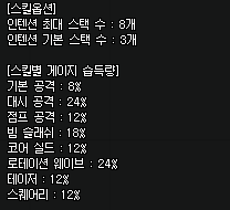 1차 각성 패시브인 "앰플리파이"를 통해 인텐션 최대 스택 수가 3개 증가하였고,