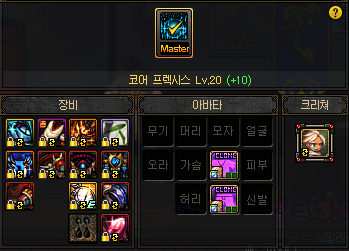 딜을 할 때의 아바타에 플래티넘 엠블렘은 "코어 블레이드 마스터리"를 상, 하의에 장착해주는 것이 좋습니다.