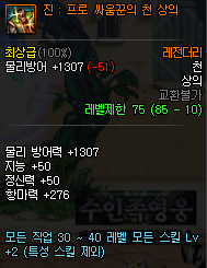 만약 결투장 유저시라면 "진 : 프로 싸움꾼의 천 상의"를 초월해 주시면 레벨링을 상의에서 2 더하실 수 있습니다.