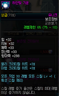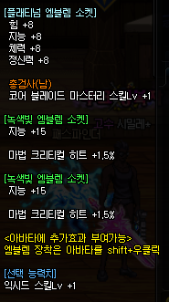 아바타의 경우에는 옵션은 상의/모자는 지능, 얼굴/목가슴은 공격속도, 상의는 스킬 레벨링,