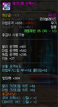 경매장에서 10만 골드도 하지 않는 잡 유니크 무기가 코어 프렉시스의 레벨을 2렙 올려주니 참고하시면 되겠습니다.