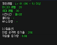 마법 크리티컬 확률 및 공격력을 증가시켜주고, 받는 피해 감소율은 2차 각성 패시브 "코어 패러다임"에 의해 10퍼 증가하였습니다.