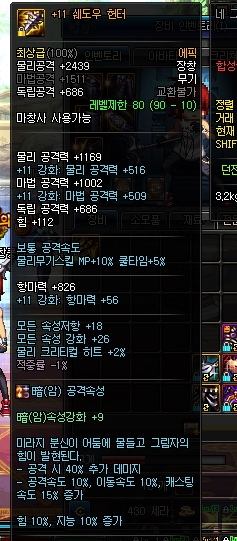 쉐도우 헌터 - 추뎀 40% + 힘지능 10% + 모든속성강화 26